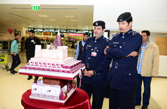 وقد قامت مجموعة من منتسبي ومنتسبات الإدارتين بتوزيع الهدايا على المسافرين والعاملين في المطار بمناسبة اليوم الوطني للدولة لإضفاء جو من الفرحة والسعادة على المسافرين وموظفي شركات الطيران العاملة، وأفراد الجمارك، ومنسوبي الإدارتين لإشعارهم أن بقاءهم في المطار لم يفوت عليهم أن يعيشوا أجواء احتفالات الدولة بالعيد الوطني إضافة إلى نقل أجواء الاحتفال إليهم، مما كان له أبلغ الأثر الطيب في نفوس المسافرين والعاملين.
