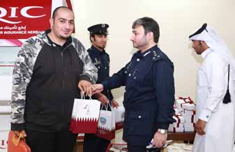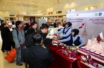 كما قامت إدارتا أمن المطار وجوازات المطار يوم الثلاثاء 17/12/2013 بتوزيع هدايا اليوم الوطني على المسافرين القادمين إلى البلاد عبر مطار الدوحة الدولي بالإضافة الى كافة الجهات العاملة بالمطار من موظفي شركات الطيران العاملة، وأفراد الجمارك، ومنسوبي ادارتي أمن المطار وجوازات المطار بمناسبة اليوم الوطني ، وذلك لمد جسور التعاون وتعزيز الترابط بين الشرطة والمواطنين والمقيمين والزائرين للدولة.