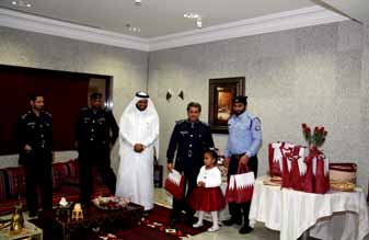 حضر توزيع الهدايا العميد/ عيسى عرار الرميحى مدير إدارة أمن المطار، والمقدم/ محمد راشد المزروعى مدير إدارة جوازات المطار، والرائد/ ناصر الحميدي رئيس قسم جوازات المطار، وعدد من ضباط وضباط صف الإدارتين.
