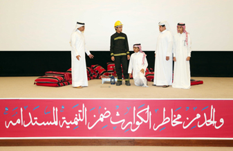 عقب ذلك قام العميد امان سعد السليطي بتكريم مختلف الجهات والمؤسسات المتعاونة مع الدفاع المدني والداعمة لجهوده التوعوية.