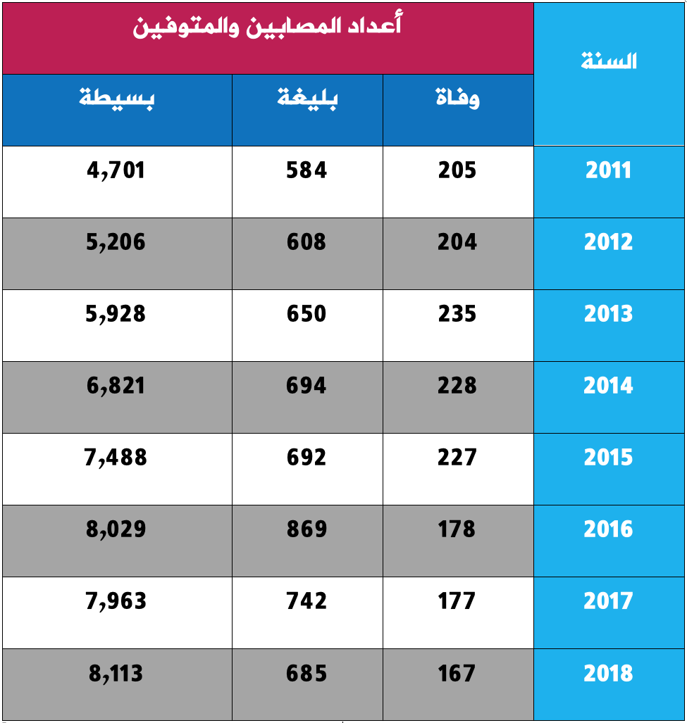 أعداد المصابين والمتوفين