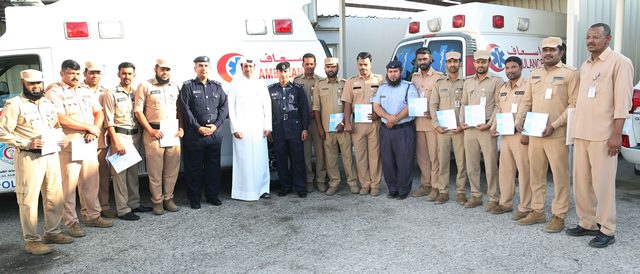 هذا وقام العميد / خليفة عبدالله النعيمي بتكريم عدد من السائقين التابعين لإدارة الخدمات الطبية لإكمالهم دورة في الإسعافات الأولية بمركز حمد الدولي للتدريب ، مؤكدا على أن هذه الدورة تأتي في إطار التعاون بين إدارة الخدمات الطبية ومؤسسة حمد الطبية ، وانها ستشمل كافة منسوبي الإدارة من السائقين والإداريين ، مضيفاً بانه يجري الإعداد لتوقيع مذكرة تفاهم بين الإدارة ومؤسسة حمد من أجل إعداد المدربين في مجال التعليم الطبي من كوادر الإدارة بالاستفادة الخبرات العالمية المرموقة لمؤسسة حمد الطبية (مركز حمد الدولي للتدريب) في مجال التعليم الطبي ، وبناء القدرات والكوادر ومواكبة التغييرات المتسارعة في البنى المعرفية والتكنولوجية الطبية بهدف توفير وتقديم الخدمة الطبية عالية الجودة التي تلبي الاحتياج ، منوهاً إلى ان مشروع إعداد المدربين في مختلف التخصصات الطبية والعلاجية يأتي في إطار توجهات إدارة الخدمات الطبية لإنشاء مركز للتدريب الطبي بالإدارة في المستقبل القريب .