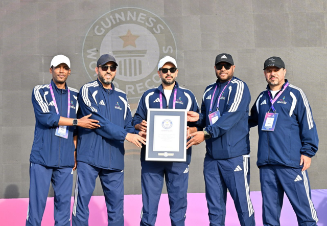 وأعلن السيد برافين باتيل، ممثل موسوعة "غينيس" للأرقام القياسية، خلال حفل أقيم بهذه المناسبة ضمن فعاليات اليوم الرياضي للدولة، اعتماد الرقم القياسي الجديد، وقام بتسليم شهادة الموسوعة إلى العقيد أحمد بن حمد آل ثاني، نائب رئيس الاتحاد الرياضي القطري للشرطة، ممثلًا عن وزارة الداخلية وقوة الأمن الداخلي "لخويا"، كما تسلم الشهادة عن المدينة الإعلامية السيد حمد عمر المناعي، الرئيس التنفيذي للمدينة، وعن "زوروا قطر" السيد أحمد حمد البنعلي، مدير إدارة الفعاليات والمهرجانات، بحضور عدد من المسؤولين والشركاء.