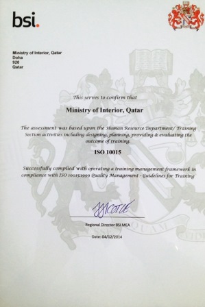 احتفلت إدارة الاتصالات بوزارة الداخلية يوم الخميس 29/10/2015 م بمراسم تسلمها شهادة التوافق مع المواصفات القياسية الدولية الخاصة بنظم الجودة (ISO 9001-2008 ) وذلك بحضور سعادة اللواء/ عبدالعزيز الأنصاري مدير إدارة التعاون الدولي والعميد/ علي سالم الحنزاب مدير إدارة الاتصالات والعميد/ عبدالرحمن ماجد السليطي مدير إدارة التخطيط الاستراتيجي ، وقد مثل سعادة سفير جمهورية المانيا الاتحادية الصديقة في مراسم تسليم الشهادة السيدة / هيثر موخل الملحق التجاري بالسفارة الالمانية بالدوحة ، كما حضر الاحتفال عدد من كبار الضباط والمدعوين من الإدارات الأخرى بوزارة الداخلية ورؤساء الأقسام والمهندسين والفنيين بإدارة الاتصالات.