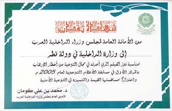 فازت وزارة الداخلية لمرات عديدة في مسابقات الأمانة العامة لمجلس وزراء الداخلية العرب، بالأعمال والإنتاجات المختلفة التي تشارك بها، وقد حصلت عام 2005 على جائزة المركز الأول في مسابقة الأفلام التوعوية التي نظمتها الأمانة، حيث فاز الفيلم الذي أعدته الوزارة في مجال التوعية بأخطار الإرهاب، وتم منحها الجائزة تقديرا للمساهمة القيمة والمتميزة في التوعية الأمنية وفقا لما ورد في شهادة التقدير التي منحت لها بهذه المناسبة.