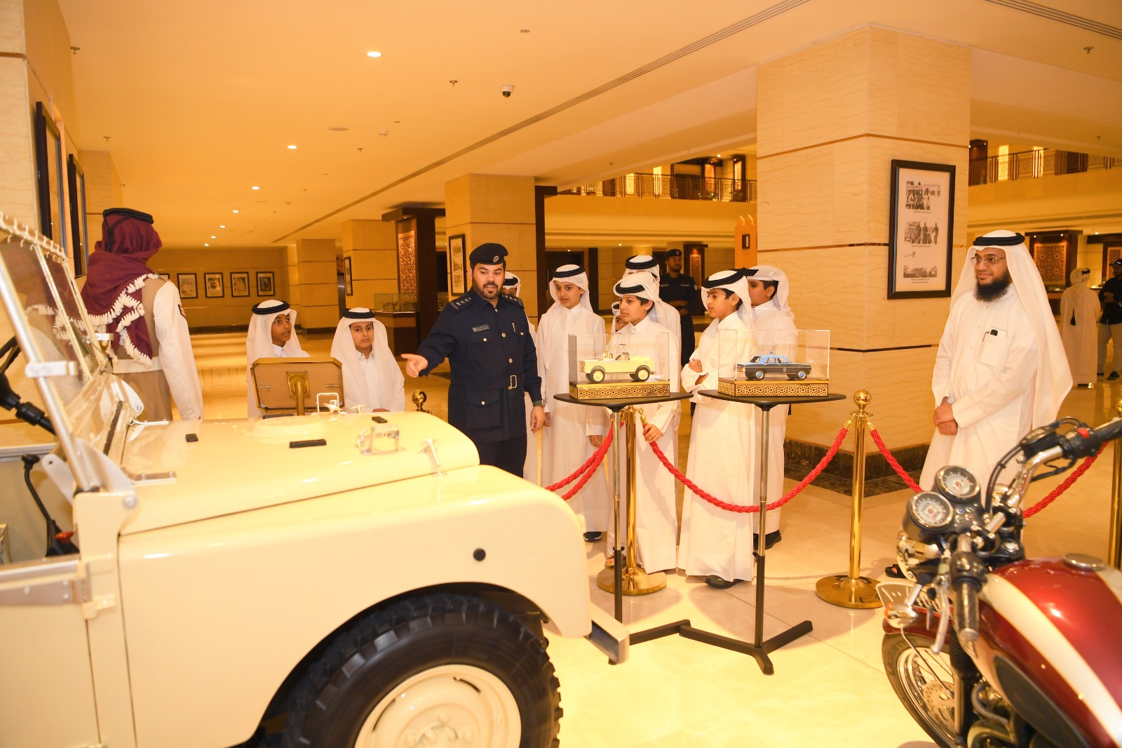 وهدفت الزيارة إلى تعريف الطلاب بوزارة الداخلية ومهام رجل الأمن ودوره في خدمة الوطن والمجتمع، وتم خلال الزيارة، تنظيم جولة تعريفة للطلاب في متحف الشرطة، الذي يوثق لمراحل تطور الشرطة القطرية عبر تاريخها، حيث تعرفوامن خلاله على محتويات المتحف التي شملت زي الشرطة وبعض الوثائق ومجسمات المباني، فضلا عن الآليات والأسلحة والمركبات المستخدمة سابقاوغيرها.