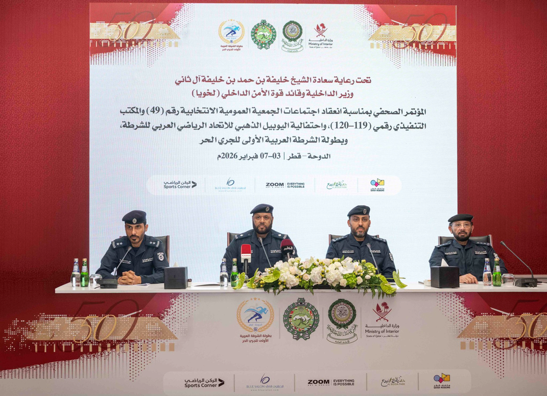 This was announced during a press conference held by the Qatari Police Sports Federation, where Major Abdullah Khamis Al Hamad, Secretary-General of the Qatari Police Sports Federation, confirmed that preparations have been completed to receive delegations from 21 Arab countries, coinciding with the Golden Jubilee of the Federation and the Arab Police Cross-Country Championship.